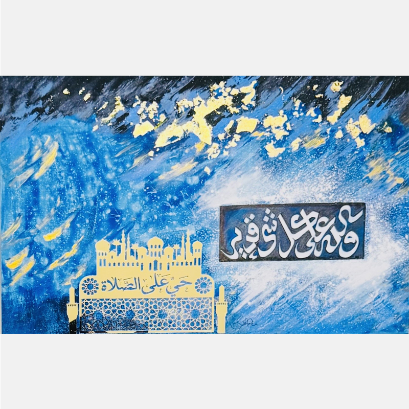 In this beautiful painting, “Durood”, we Pray to Allah to send Peace and Blessings upon Holy Prophet Muhammad (P.B.U.H) and his Family.